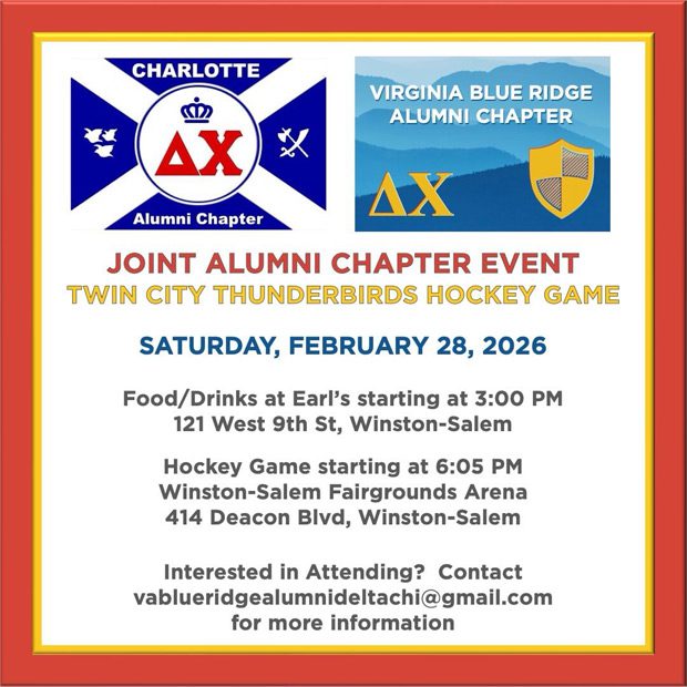 Delta Chi’s Charlotte and Virginia Blue Ridge Alumni Chapters are joining together for an event with the Winston-Salem Thunderbirds on Saturday, February 28.